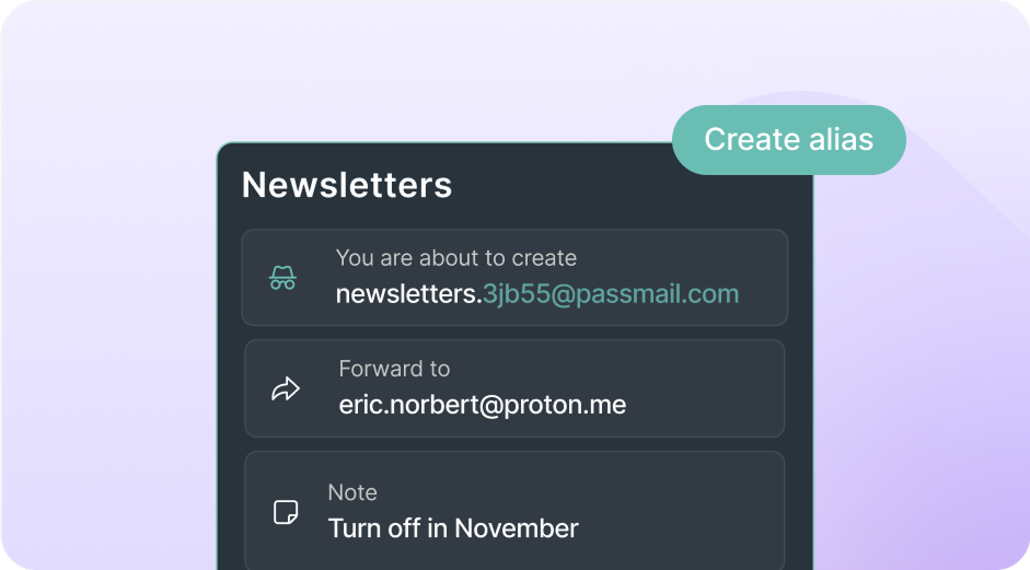 Whenever you sign up for a new online account, Proton Pass can automatically create an alias to keep your actual email address protected.