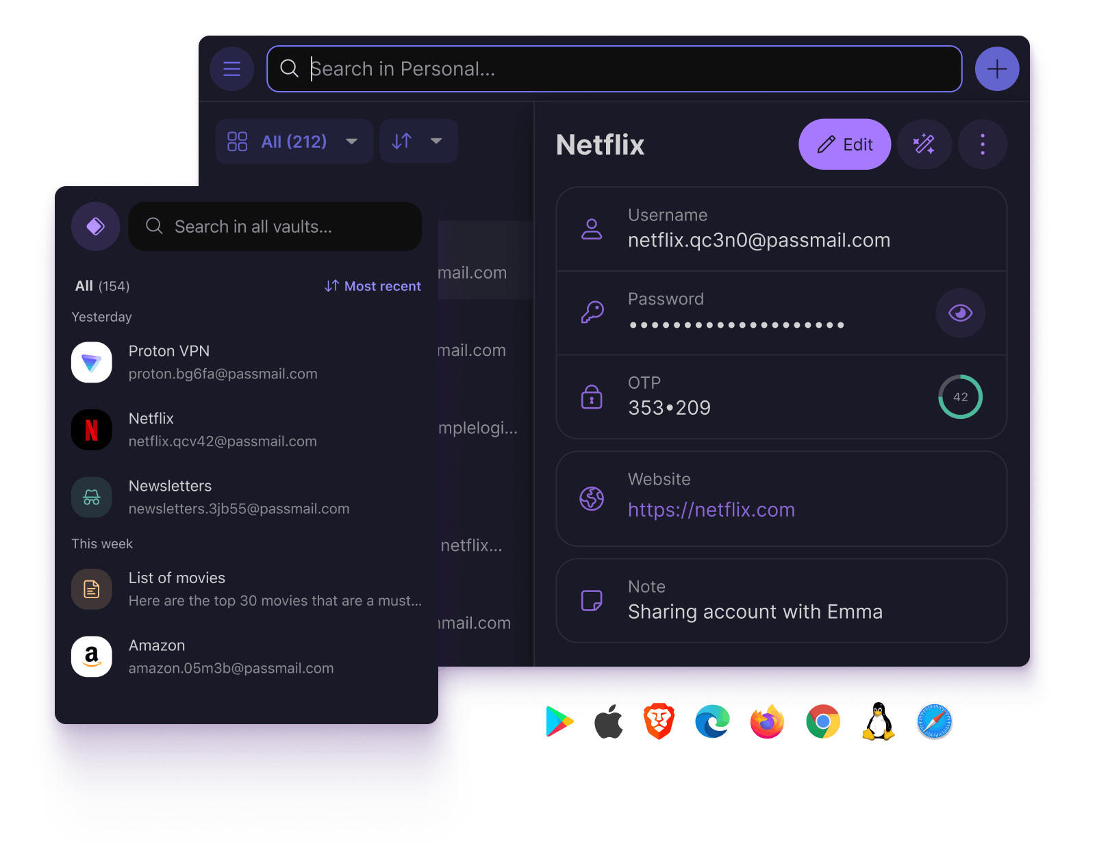 Securely store, share and auto-login to your accounts with Proton Pass, using end-to-end encryption trusted by millions.