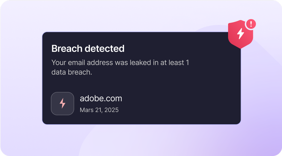 Receive immediate alerts if your personal information is leaked in a third-party data breach. You can monitor multiple email addresses or your own domain name.